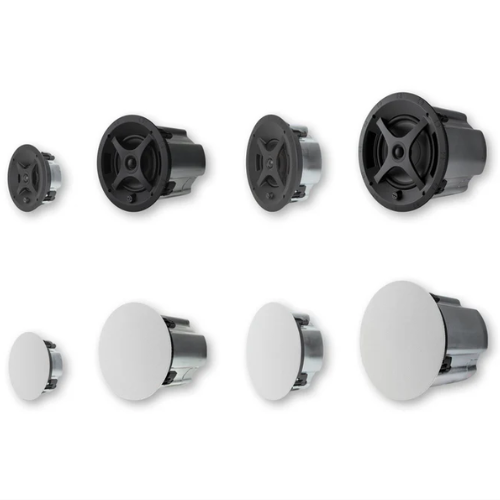 The Sonance PS-C41RT Professional Series In-Ceiling Speaker combines premium sound performance with a clean, modern design. Its magnetically secured, bezel-less grille makes installation easy and seamless, while optional black or square grilles provide flexibility for any décor. Engineered with a 4″ polypropylene woofer and 0.75″ soft dome tweeter, this speaker delivers powerful bass, clear highs, and exceptional sound coverage—ideal for commercial and professional audio environments.